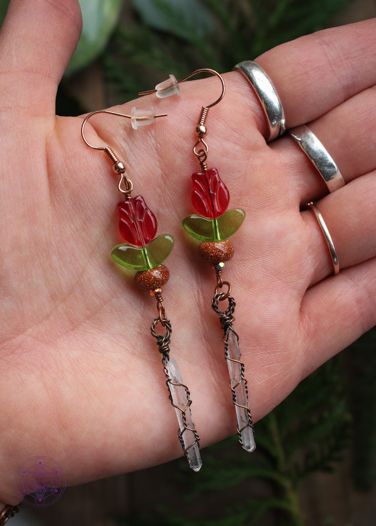 Goldstone and Quartz Red Tulip Dangle Earrings – Essential Chi Jewelry