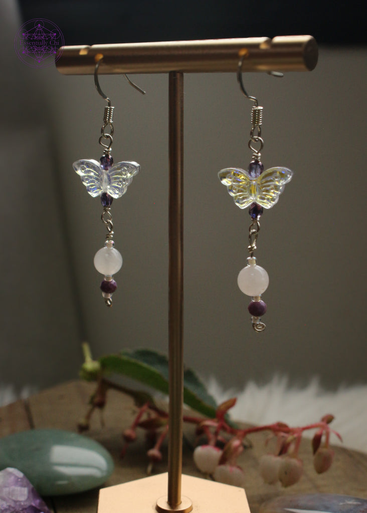 Butterfly Rose Quartz and Phosphosiderite Earrings – Essential Chi Jewelry