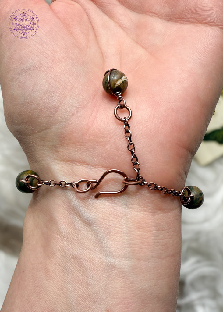 Rainforest Rhyolite Infinity Link Copper Bracelet – Essential Chi Jewelry