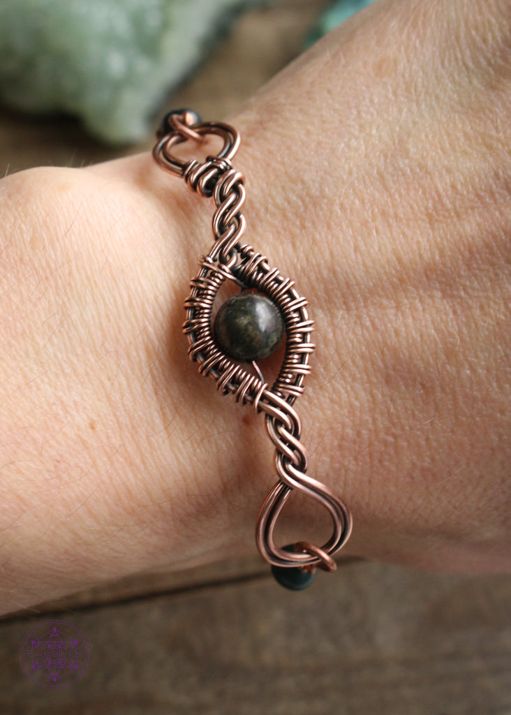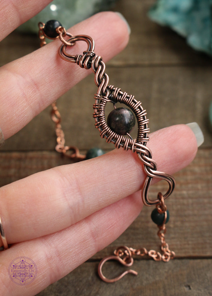 Twisted Kambaba Jasper and Moss Agate Copper Wire Wrapped Bracelet – Essential Chi Jewelry